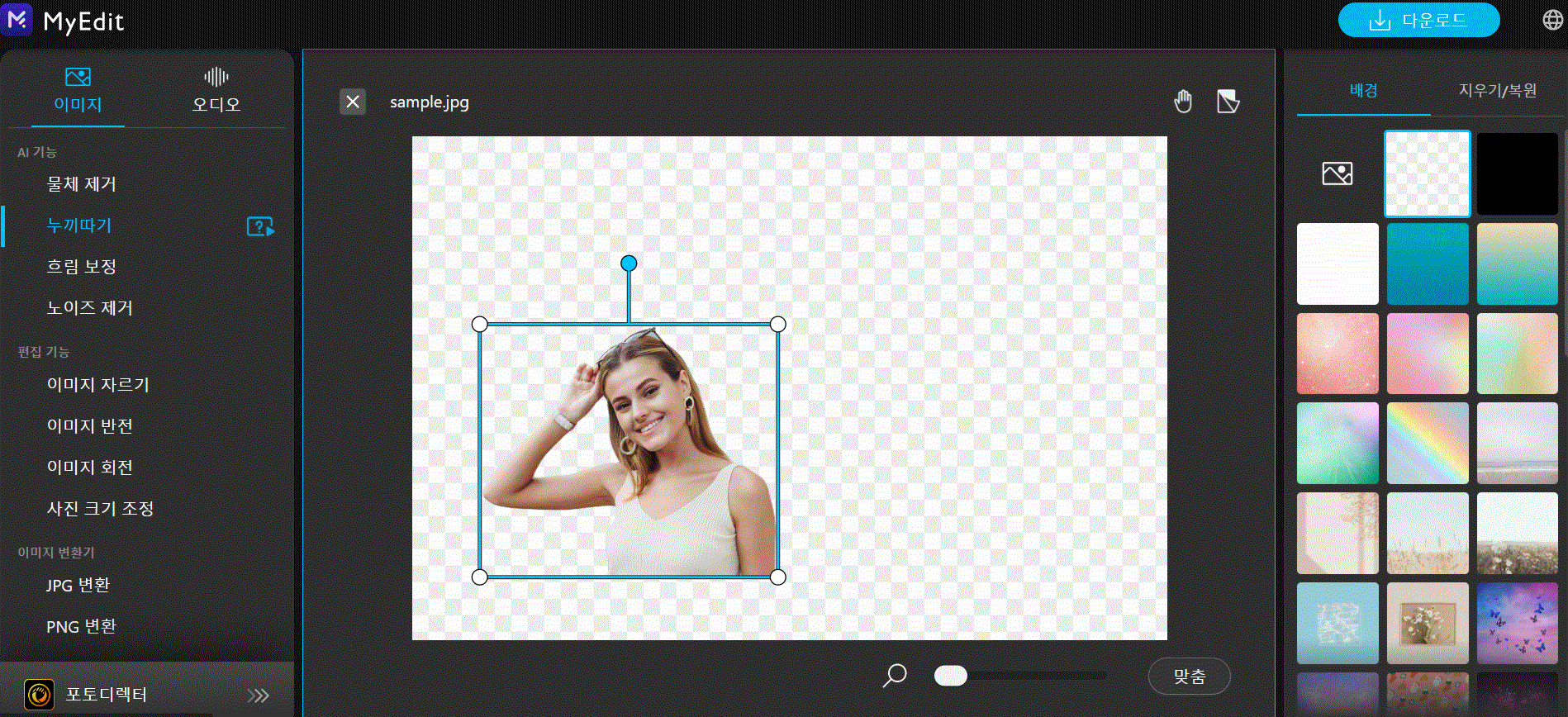 MyEdit은 한국어 인터페이스를 제공해서 처음 접하는 분들도 어렵지 않게 사용할 수 있어요. AI 자동 누끼 기능 외에도 브러시로 정교하게 손질할 수 있어서 제품 사진처럼 디테일이 중요한 이미지에 특히 유용하더라고요. 배경을 다른 템플릿으로 바꾸거나, 이미지 크기까지 조정 가능한 것도 마음에 들었어요. 이거 진짜 한 번 써보시면 '오?!' 하고 놀라실 걸요? 😆