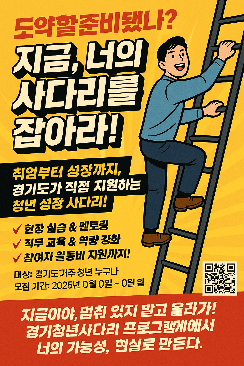 Gyeonggi Youth Legs는 단순한 프로그램이 아니라, 여러분의 가능성을 끌어올려주는 사다리라는 걸 믿어요.
