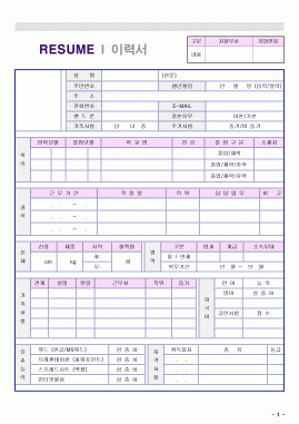 - 기본 이력서 양식 : 개인 정보, 학력, 경력, 자격증 등을 포함한 가장 기본적인 형태예요.