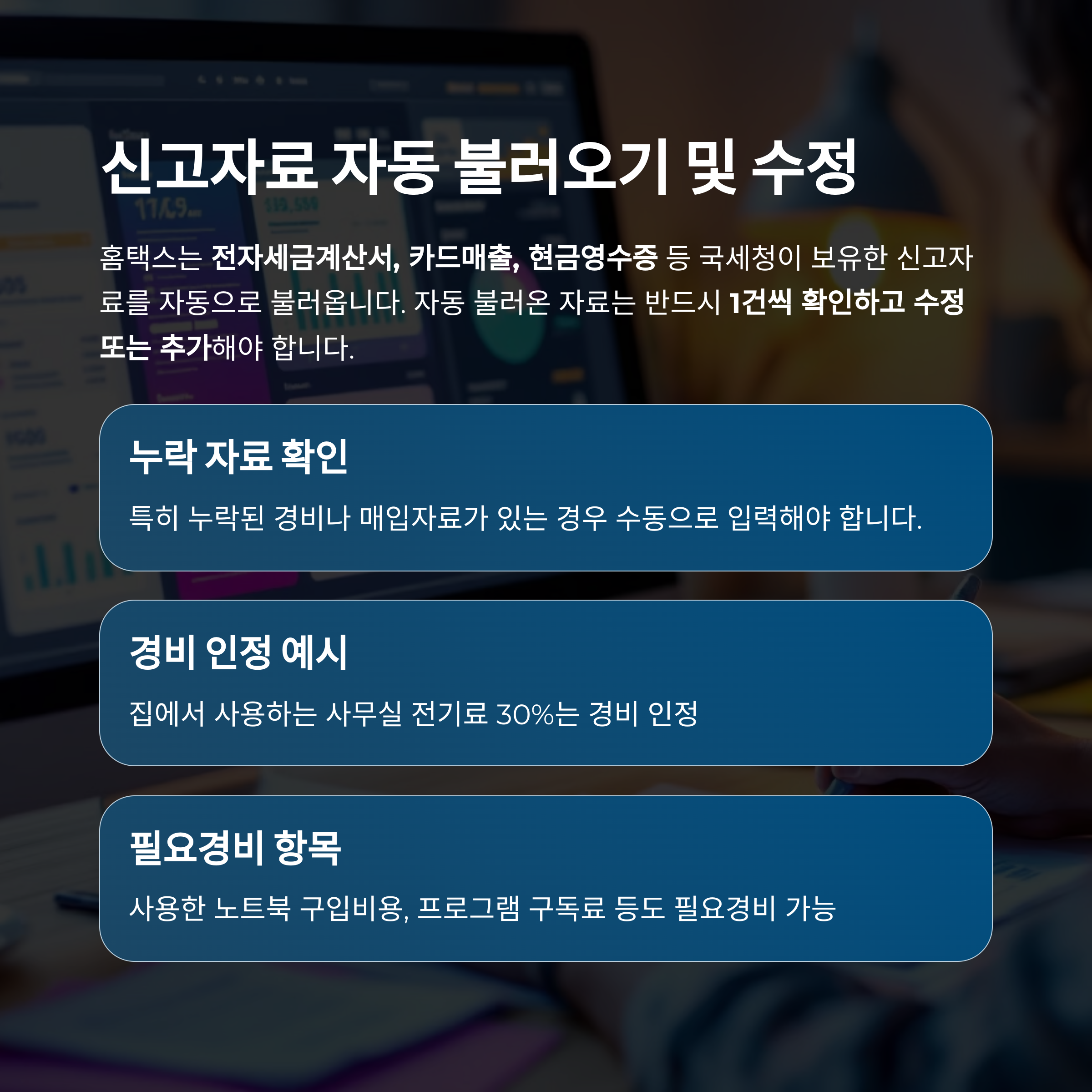 특히 누락된 경비나 매입자료가 있는 경우 수동으로 입력해야 합니다