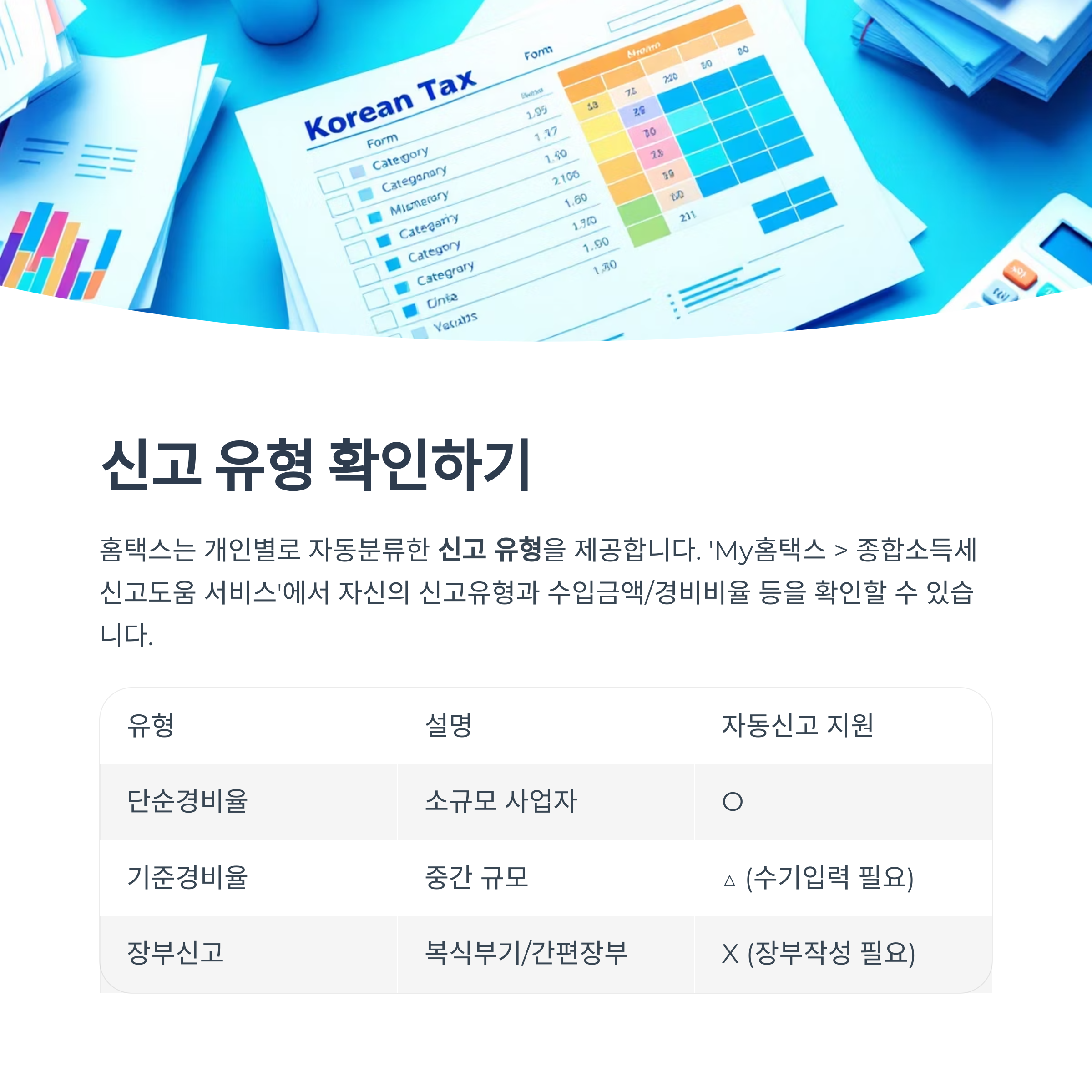 홈택스는 개인별로 자동분류한 신고 유형을 제공합니다