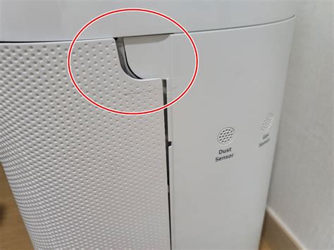 공기청정기 전면 덮개를 손으로 조심스럽게 엽니다. 자석 또는 클립식으로 고정되어 있는 경우가 많습니다.