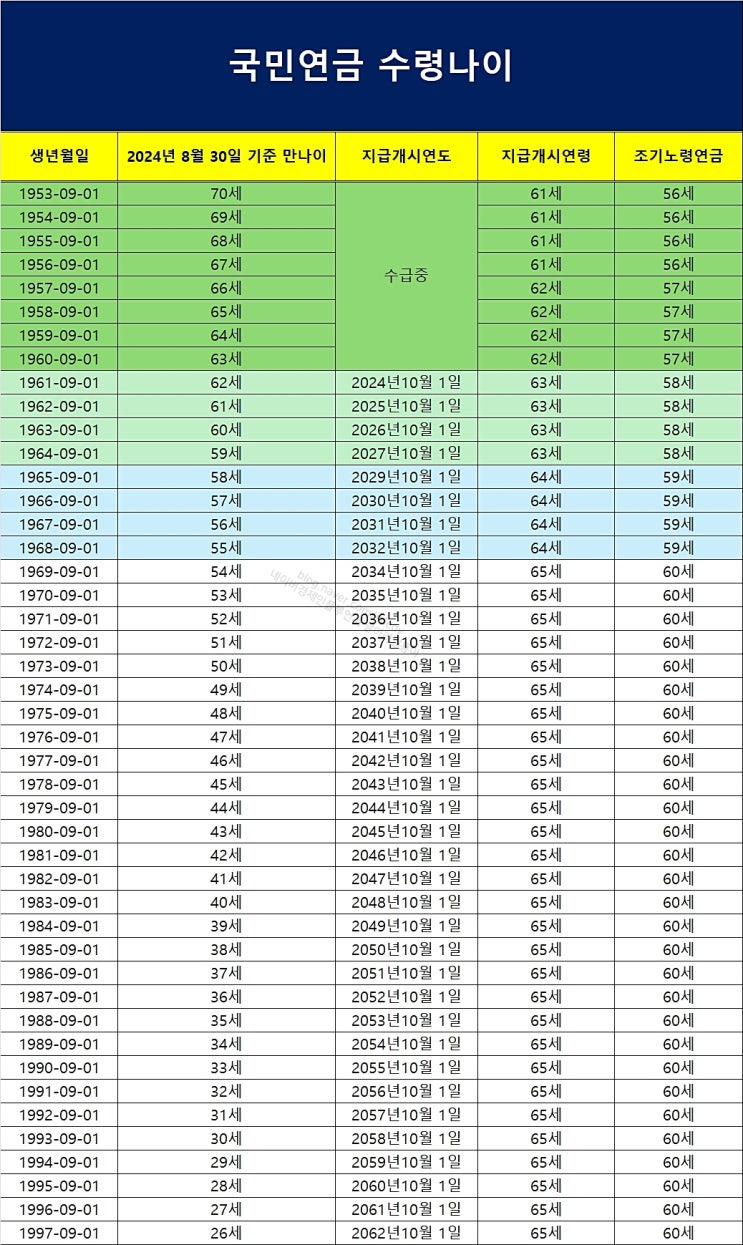 출생연도에 따라 연금을 언제부터 받을 수 있는지 정리해봤어요: