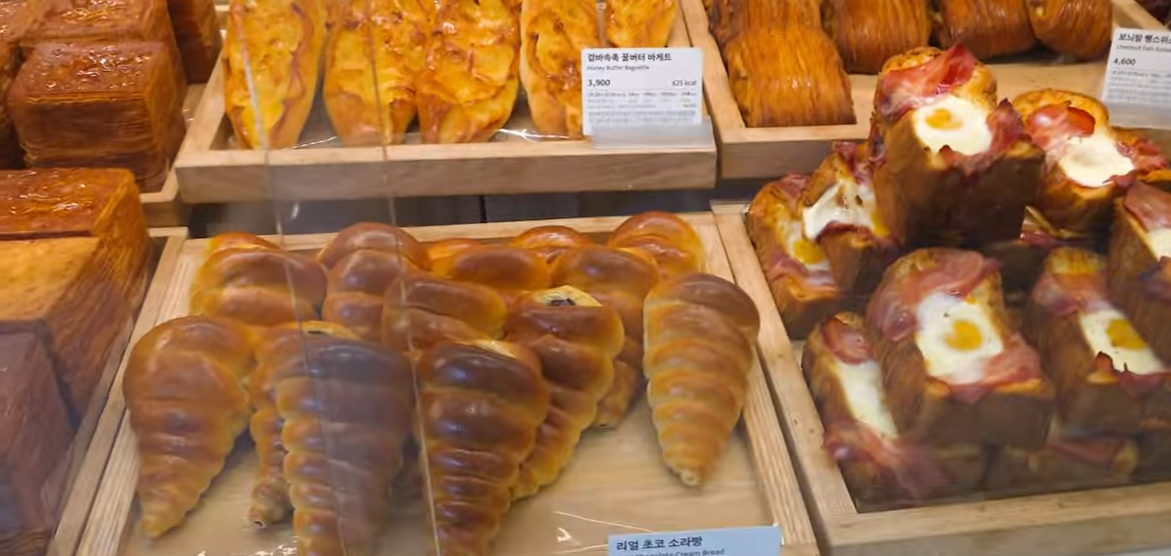 게다가 일일이 이름표가 붙어 있어서 뭐가 뭔지 헷갈리지도 않아요. 빵순이라면 이곳에서 진짜 천국을 경험할 수 있죠. 바게트에 올리브 페이스트 바르고, 샐러드 얹어 먹으면… 이건 뭐 유럽 감성 그 자체였습니다. 🇫🇷