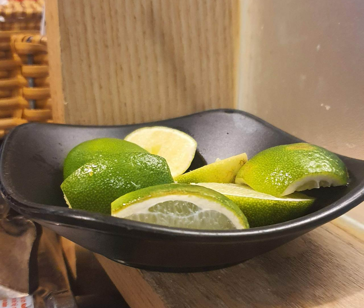 1. 신선한 레몬을 준비해요. 레몬 한 개를 반으로 자르고, 즙을 짜서 물에 섞어요.