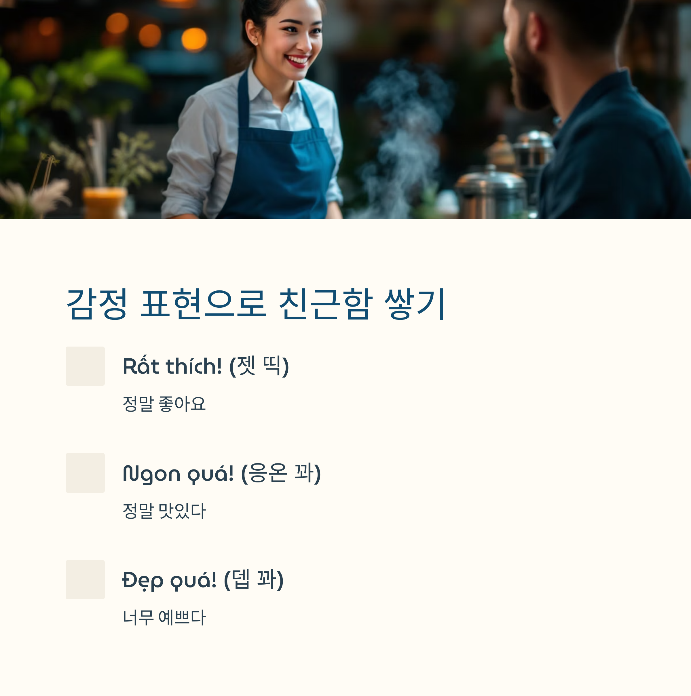 단순 관광지를 넘어서 진짜 베트남 문화를 느끼고 싶다면 아래 표현들이 큰 도움이 됩니다
