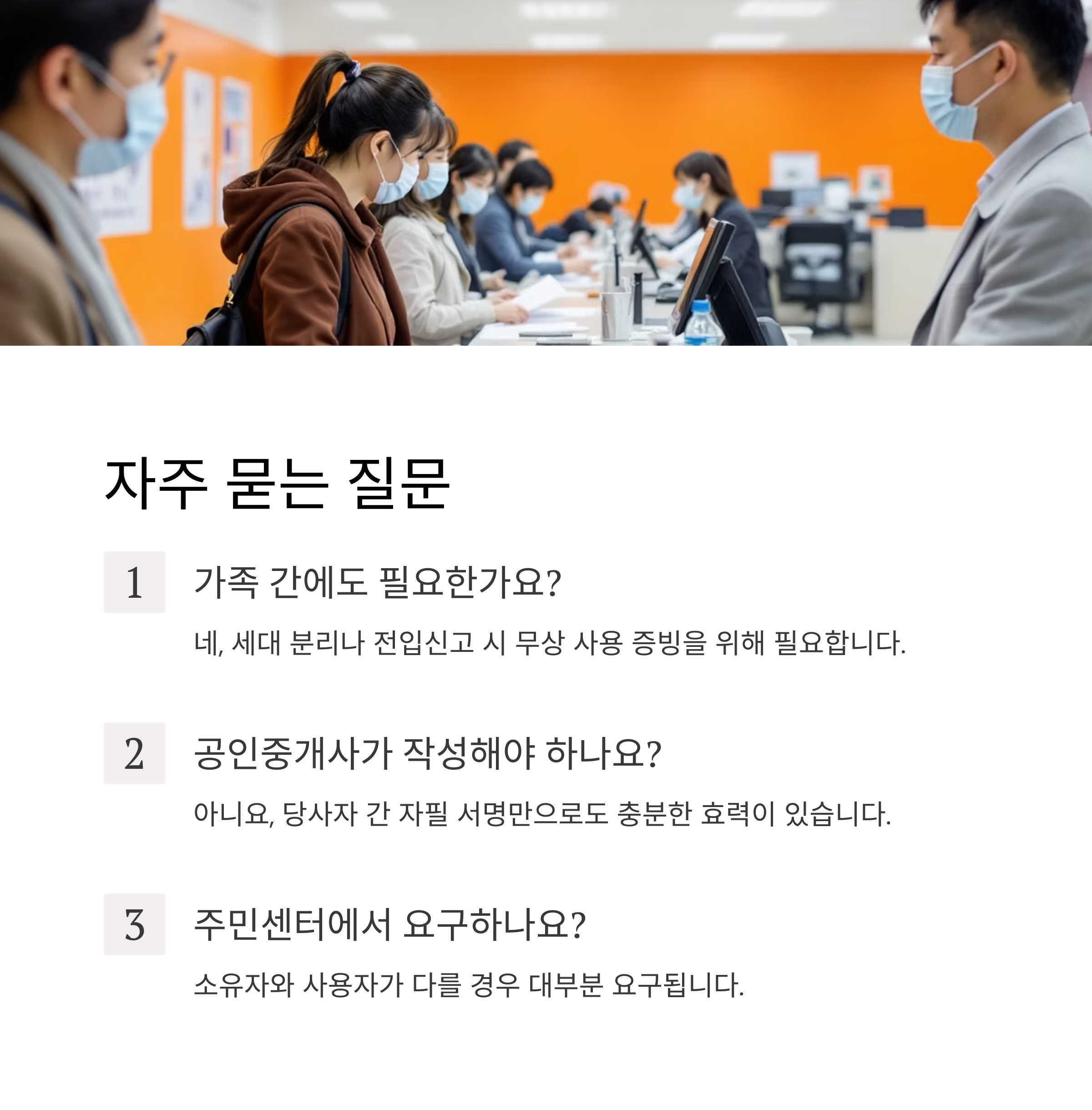 "네. 특히 세대 분리나 전입신고 시 '무상 사용'을 증빙하려면 반드시 필요합니다."
