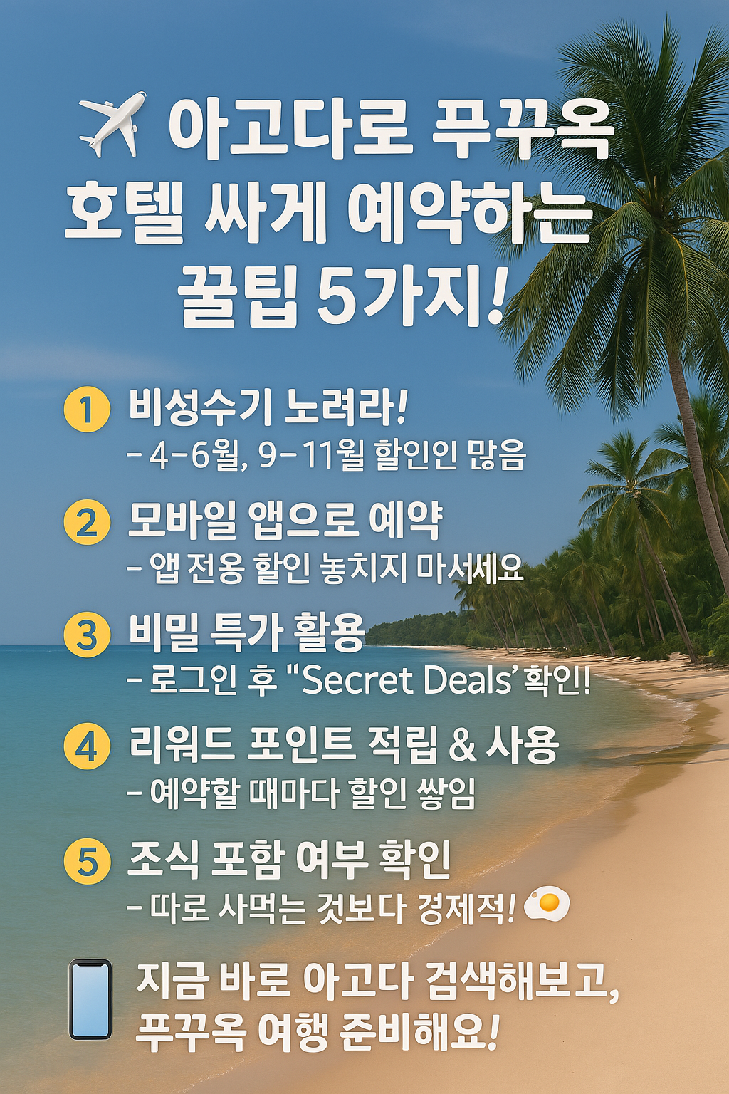 태그: 아고다, 푸꾸옥호텔, 호텔예약, 숙소할인, 여행꿀팁, 아고다할인, 여행계획, 동남아여행, 푸꾸옥여행, 숙박비절약