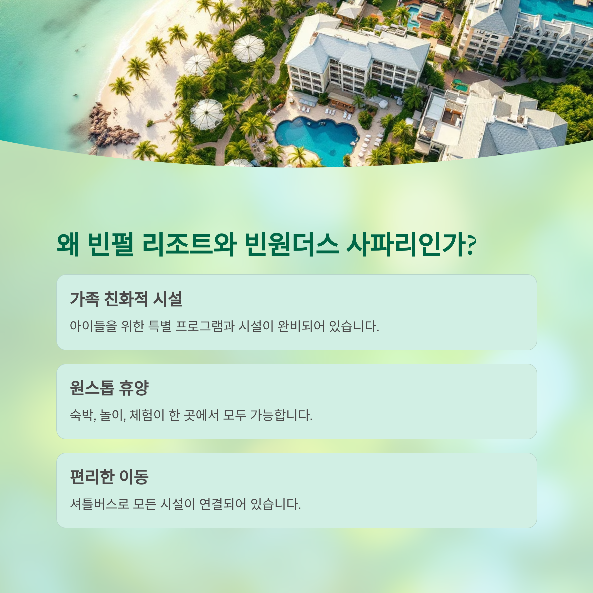 특히 빈펄 리조트와 빈원더스/사파리는 아이들을 위한 시설과 프로그램이 잘 갖춰져 있어