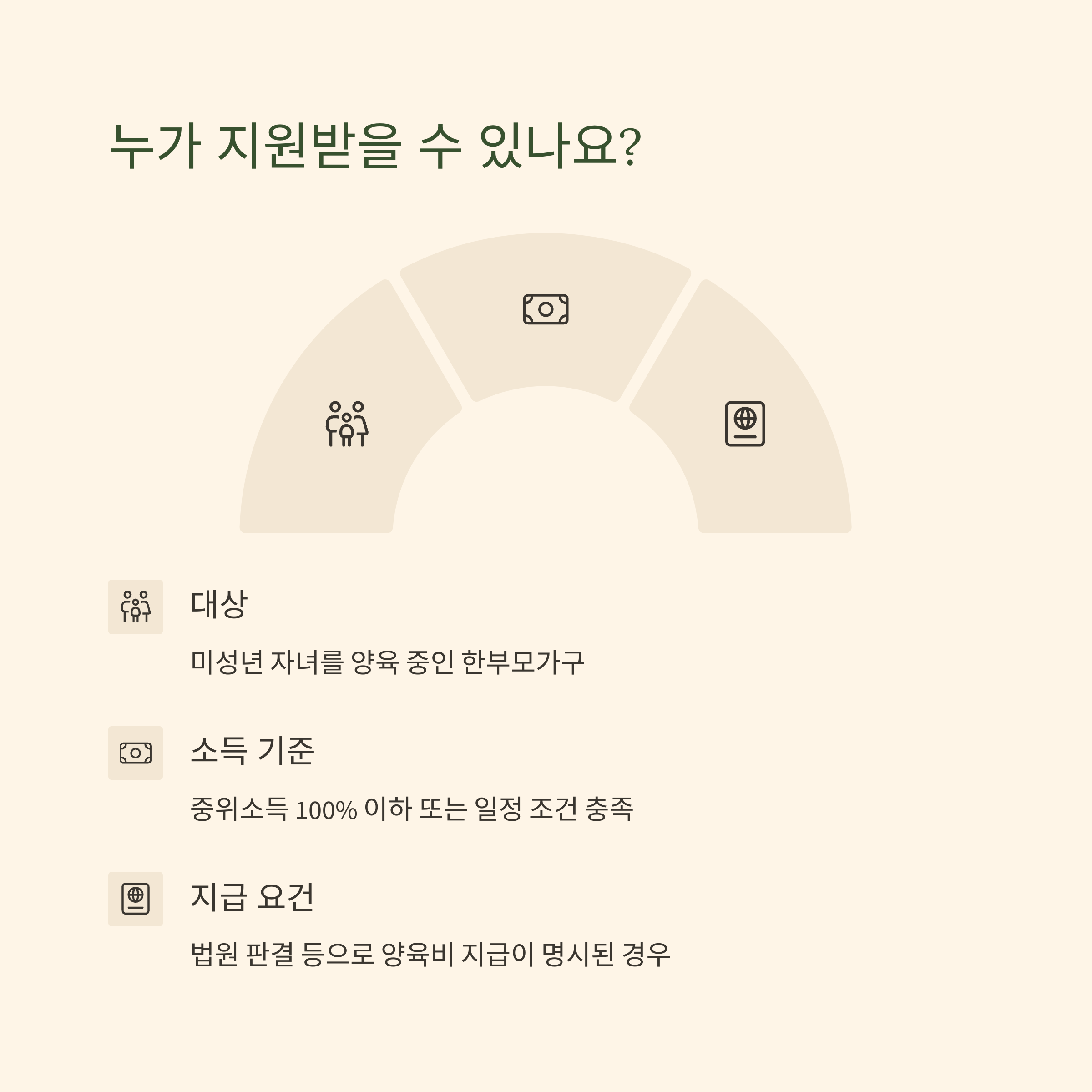 | 지급 요건 | 법원 판결 등으로 양육비 지급 명시된 경우 |