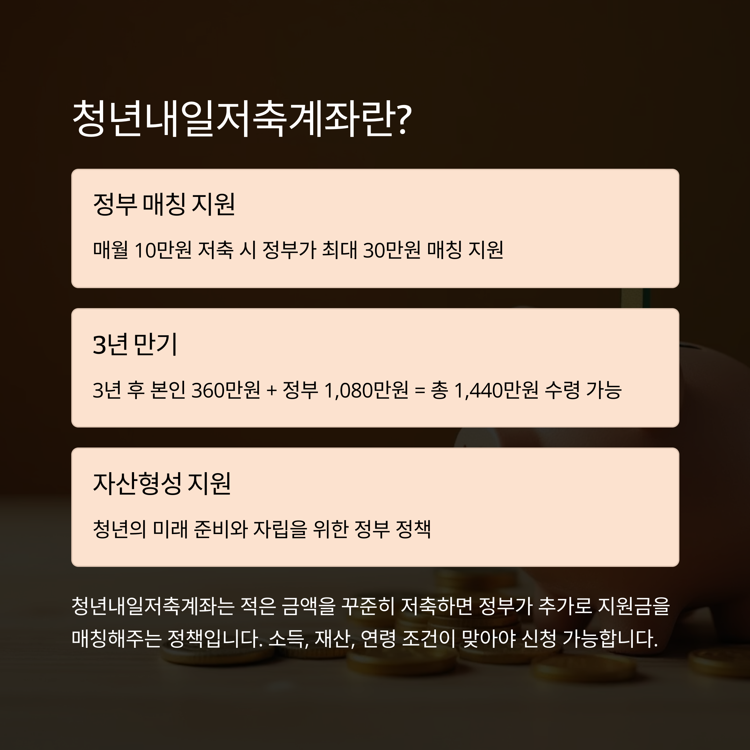 정부가 청년 자산 형성을 돕기 위해 운영 중인 ‘청년내일저축계좌’는 적은 금액을 꾸준히 저축하면 정부가 추가로
