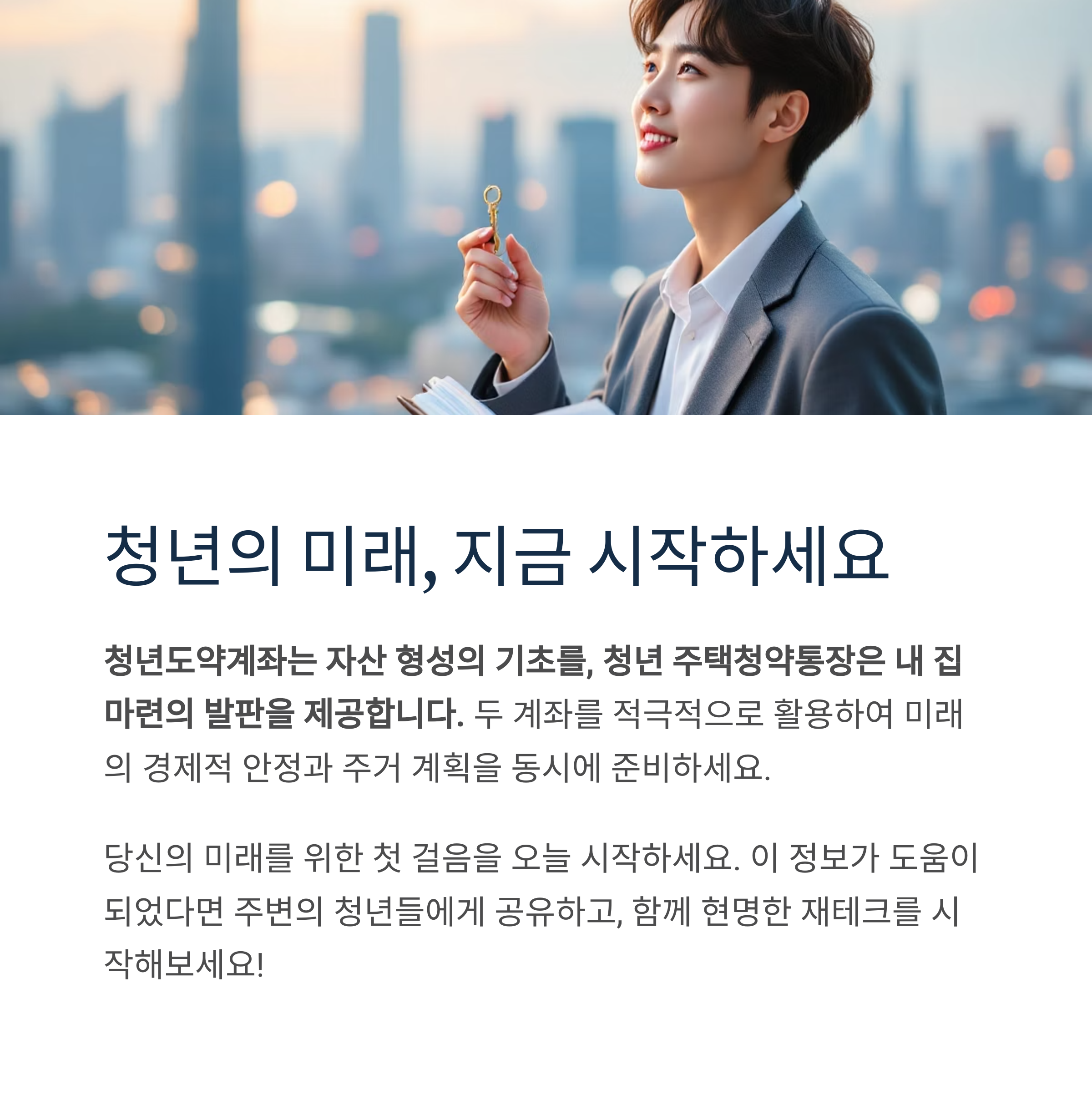청년이라면 이 두 계좌를 적극적으로 활용하여 미래의 경제적 안정과 주거 계획을 동시에 잡는 전략이 필요합니다.