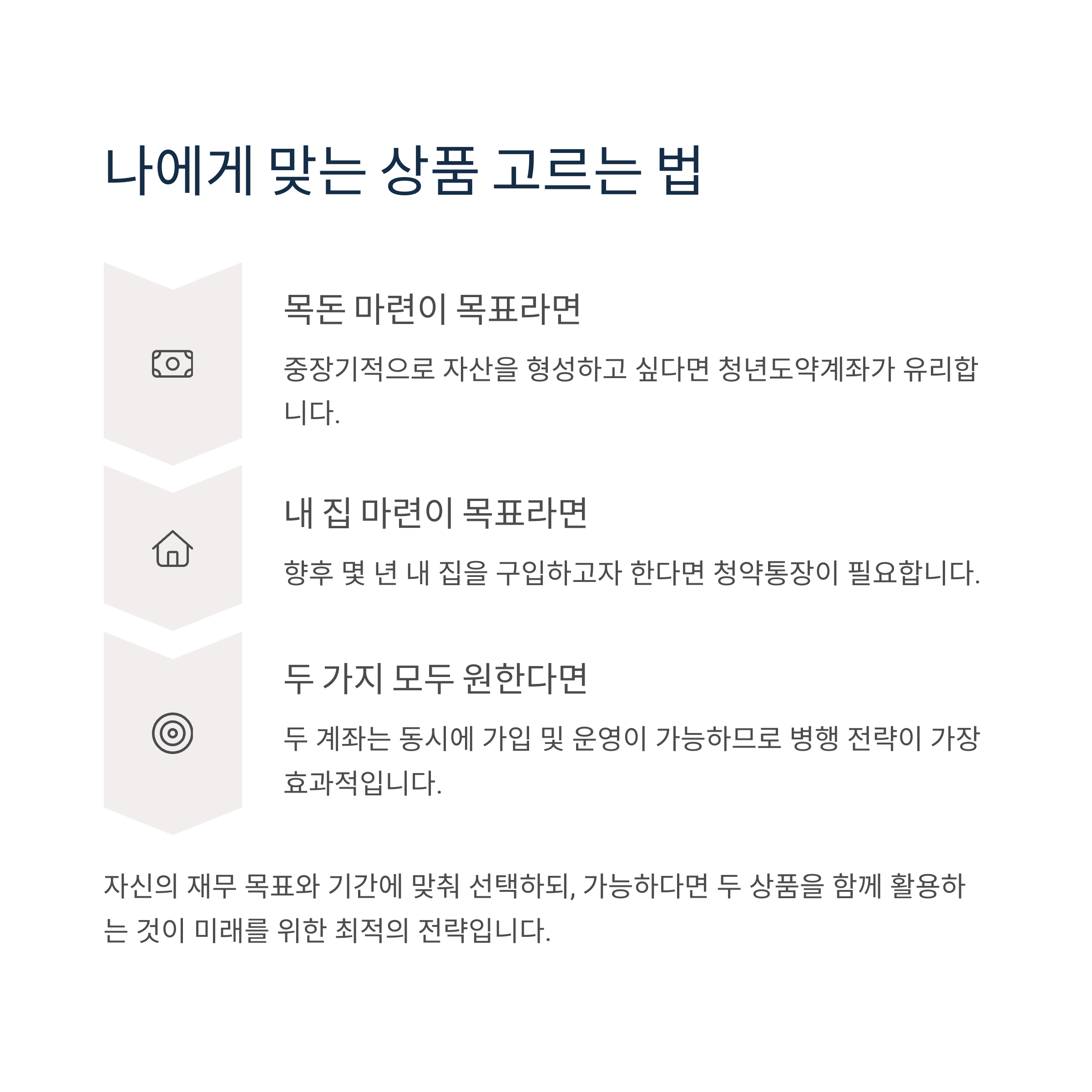 청년도약계좌는 자산 형성의 기초를, 청년 주택청약통장은 내 집 마련의 발판을 제공합니다.
