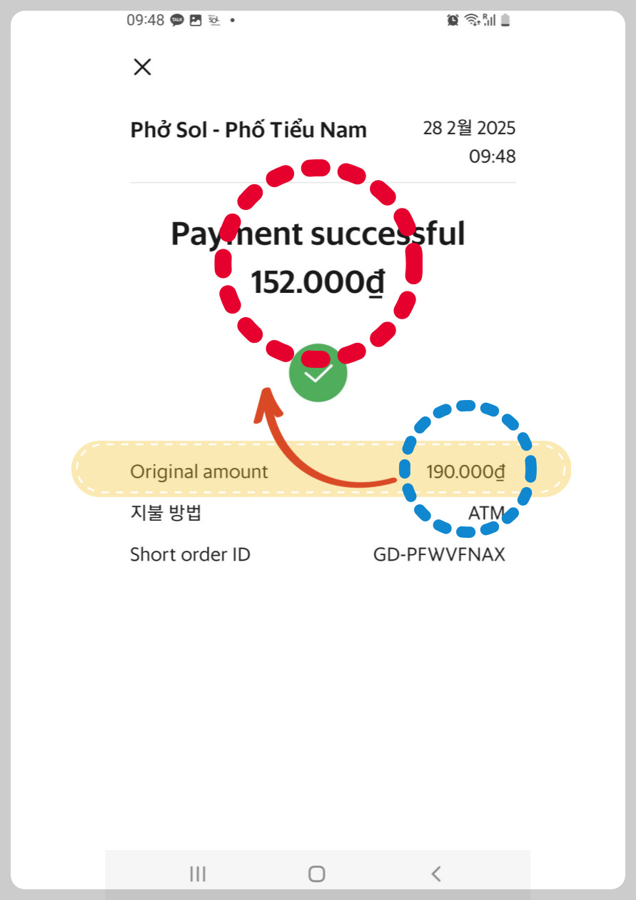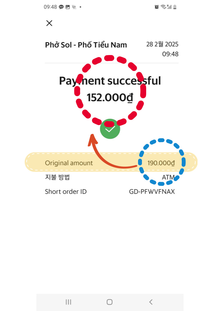 *식사가 끝나고 직원이 여수증을 가지고 오면 그랩 앱을 껴서 [매장내 식사- 내주변 바우처에 식사한 식당이 있으면 검색하고 클릭 - 직원이 제시한 금액을 넣고 - 할인 누르면 페이먼트 성공] 이라고 나와. 식당마다 할인율은 다르지만 왠지 서비스 받은 느낌!!