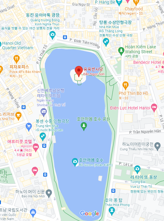 호안끼엔 호수를 방문하신다면 한번 가보세요.