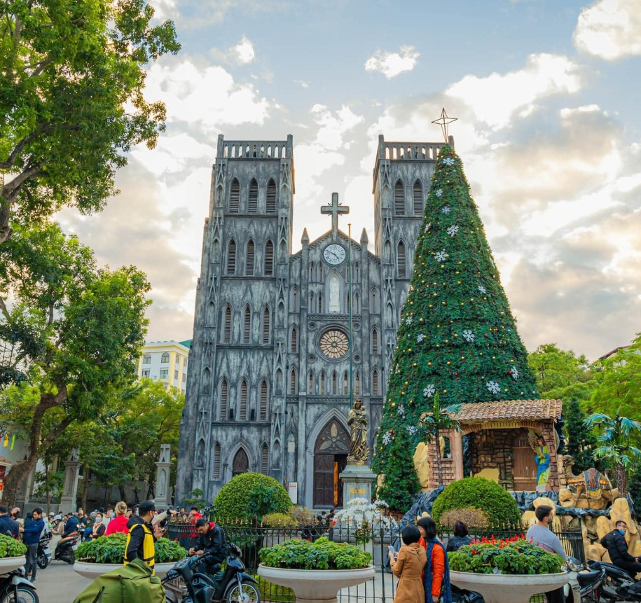 하노이 성요셉성당은 베트남의 수도 하노이에 위치한 대표적인 성당으로, 19세기 말 프랑스 신부들이 건축했습니다. 성당 내부와 외부 모두 고딕 양식으로 디자인되어 있으며, 성당 주변에는 아늑한 파리의 거리와 같은 분위기를 자아내는 주택가들이 위치해 있습니다. 성당 앞에는 큰 광장이 있어서, 이곳에서 연주되는 음악과 함께 하노이의 거리를 산책하기도 좋습니다.특히 밤에는 멋진 조명으로 빛나면서, 광장 주위에는 다양한 거리음식과 문화 행사가 열려서 매우 활기찹니다.