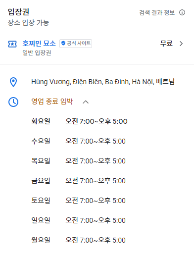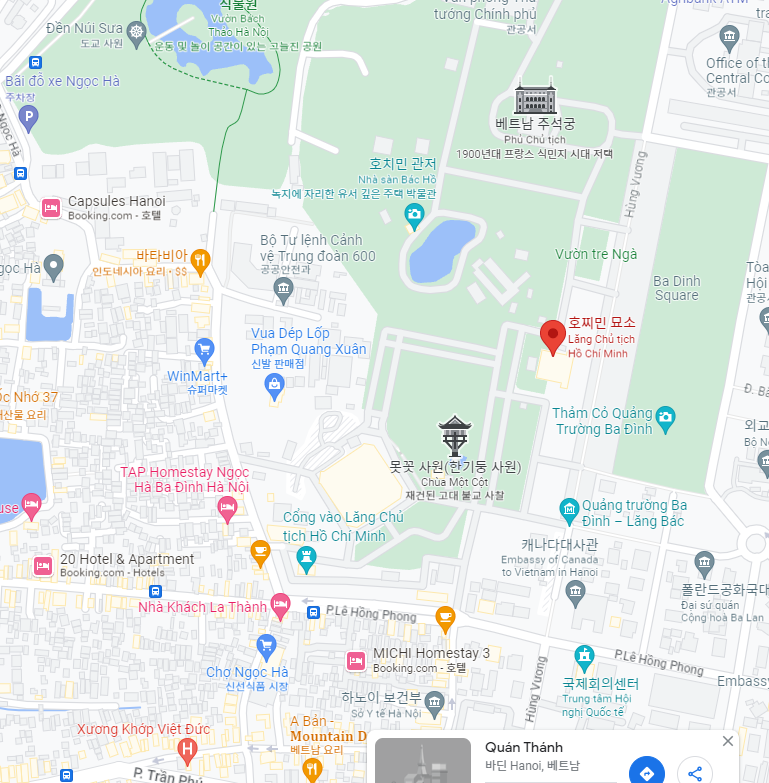 베트남의 독립을 지휘한 인물이면서 베트남에서 "호 아저씨"라는 친근한 이름으로 불리우는 베트남의 영웅의 묘입니다.