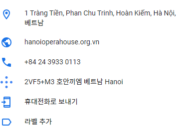 주소 : 1 Tràng Tiền, Phan Chu Trinh, Hoàn Kiếm, Hà Nội, 베트남
