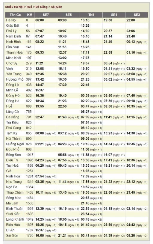 기차로 하노이에서 사이공까지 기차는 또한 하노이에서 사이공으로 이동하는 흥미로운 옵션입니다. 길을 따라 베트남의 고향 풍경을 감상하고 너무 피곤하지 않고 기차에서 휴식을 취할 수 있습니다. 기차로 여행하는 경우 하노이 역(No. 120 Le Duan Street, Van Mieu Ward, Dong Da District, Hanoi, Hanoi)에서 기차를 타고 사이공 역(No. 1 Nguyen Thong, District 3, City)에서 정차합니다. 치민). 기차 여행 시간은 약 31:20에서 34:10입니다. TN 기차 또는 SE 기차를 선택할 수 있지만 많은 여행자의 경험에 따르면 SE 기차는 이동 시간이 더 빠르고 품질이 좋으며 도로 중간에 정차하는 횟수가 적습니다.