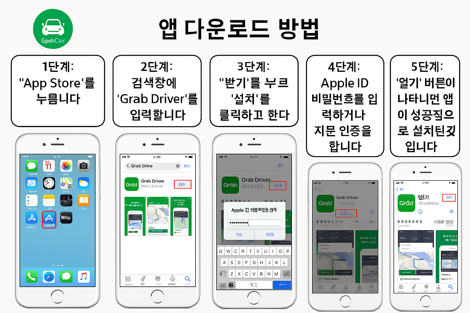 - 앱스토어/플레이스토어에서 'Grab' 설치
