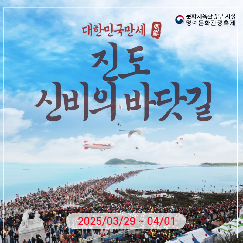 ✅ 진도 바닷길 축제 일정 확인: 매년 열리는 ‘진도 신비의 바닷길 축제’ 기간에 맞춰 방문하면 더욱 특별한 경험을 할 수 있어요!