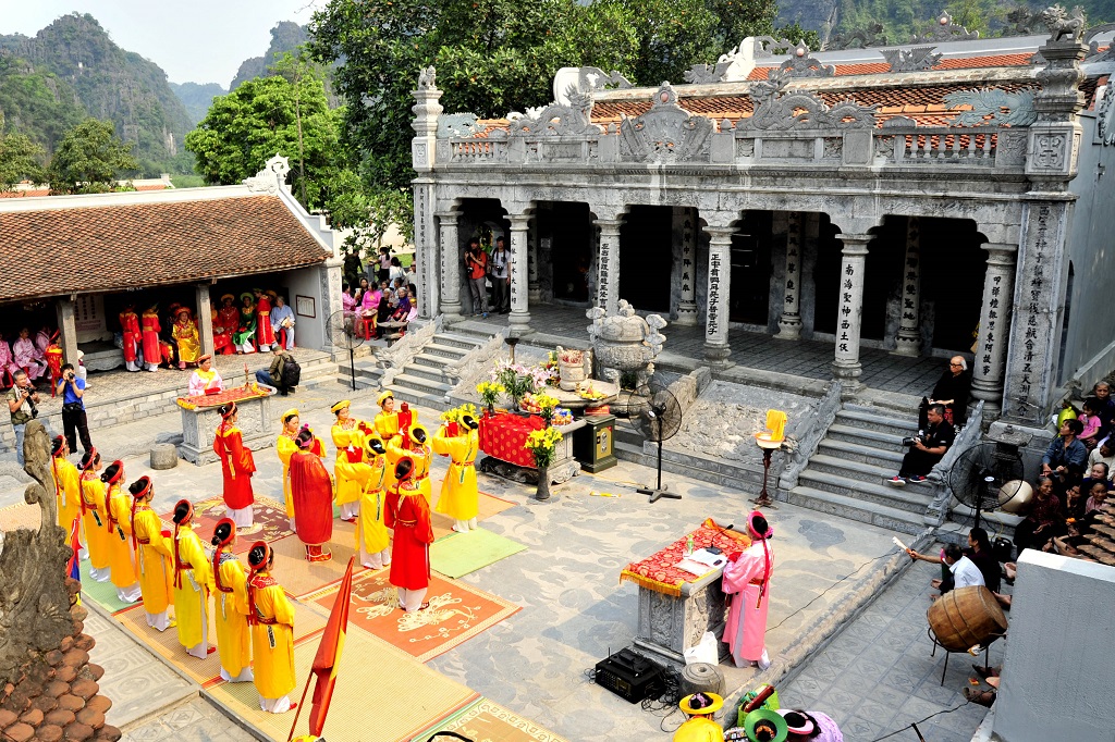 닌빈성 탐꼭 지역의 아름다운 경관 속에서 열리는 타이비 사원 축제는 고요한 사원 분위기와 전통 문화가 어우러진 지역 행사입니다. 이 축제는 쩐 왕조의 공적을 기리는 의식과 함께 다양한 민속놀이, 용선 경주, 전통 무예 시연 등이 펼쳐져요. 탐꼭의 절경을 배경으로 열리는 이 축제는 사진 찍기에도 최고랍니다.