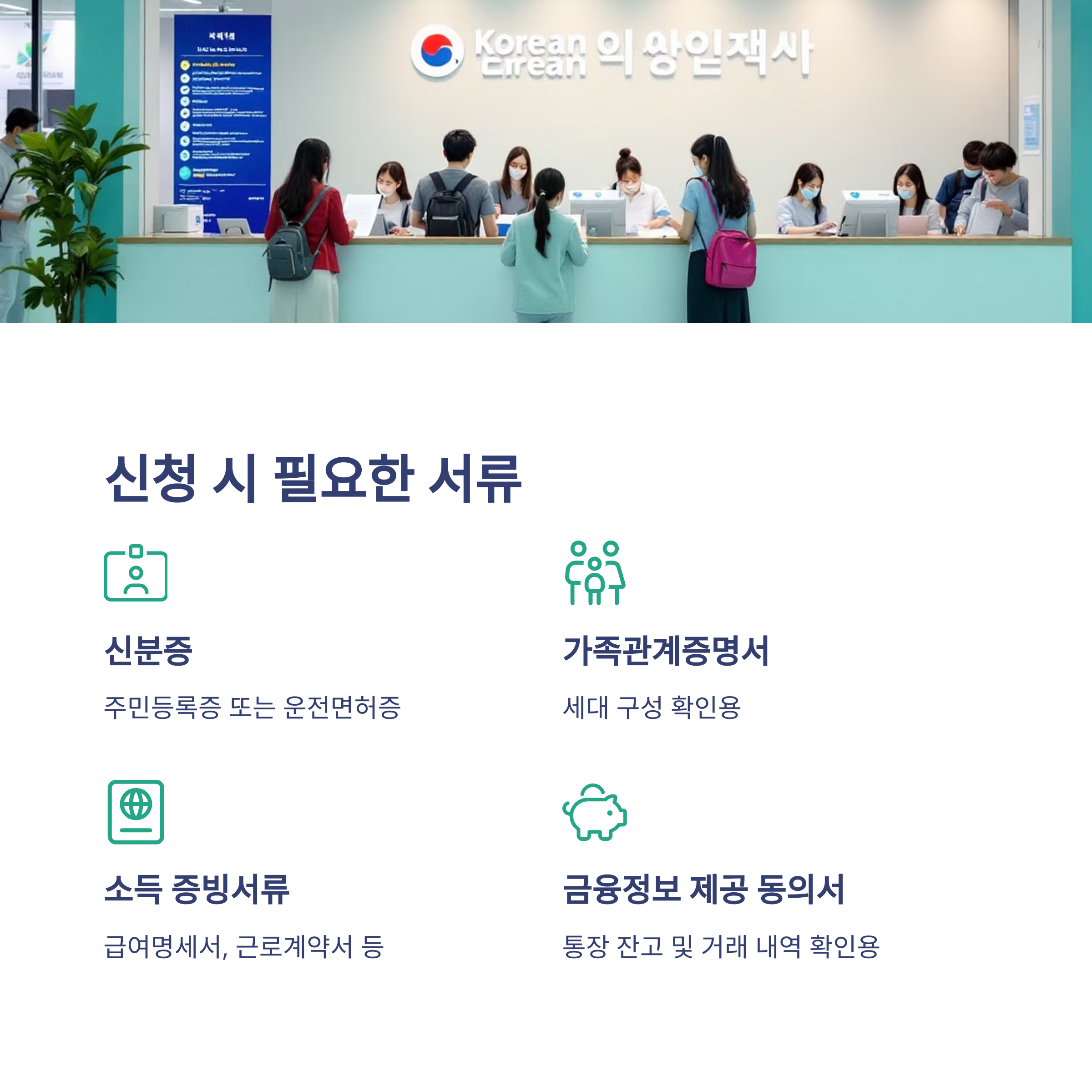 | 금융정보 제공 동의서 | 통장 잔고 및 거래 내역 확인용 |