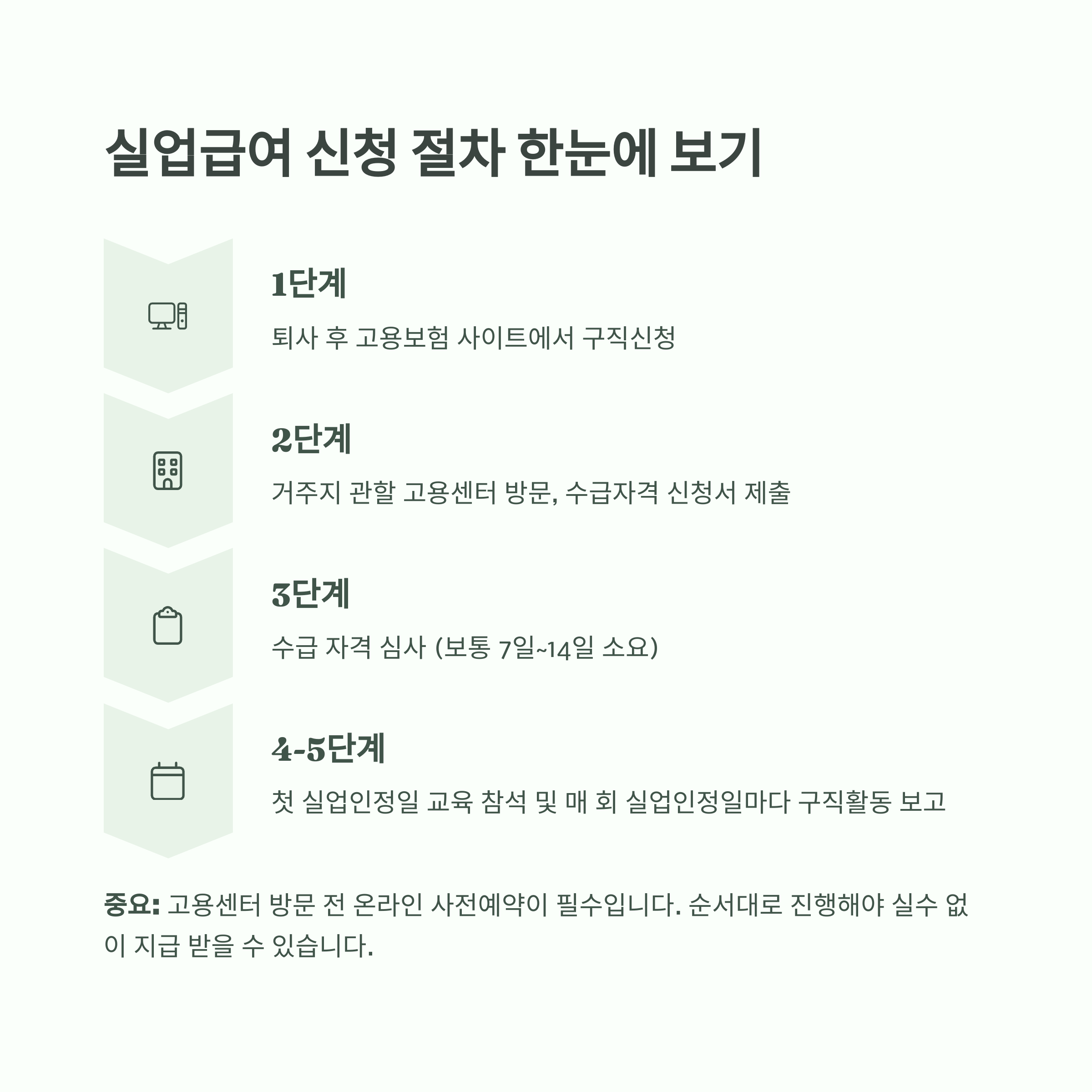 | 2단계 | 거주지 관할 고용센터 방문, 수급자격 신청서 제출 |