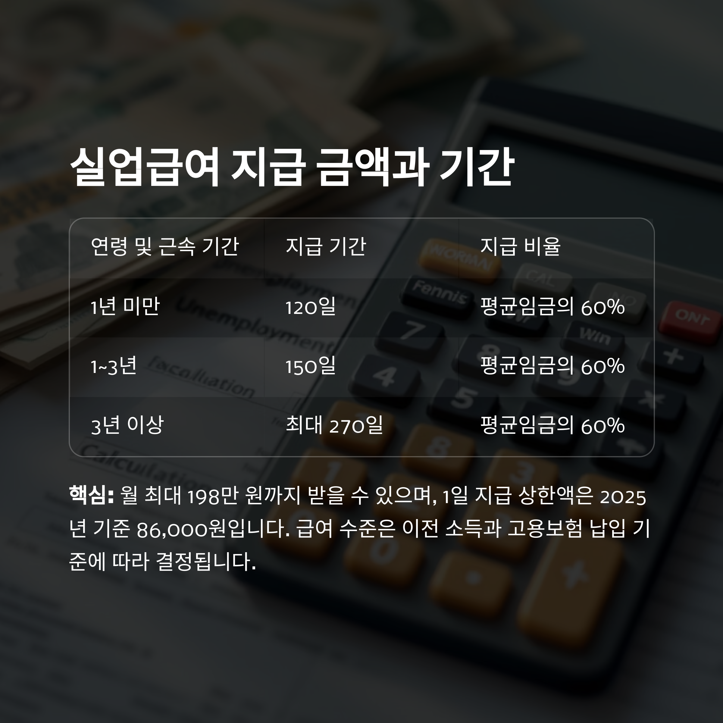 월 최대 198만 원까지 받을 수 있으며, 급여 수준은 이전 소득과 고용보험 납입 기준에 따라 결정됩니다.