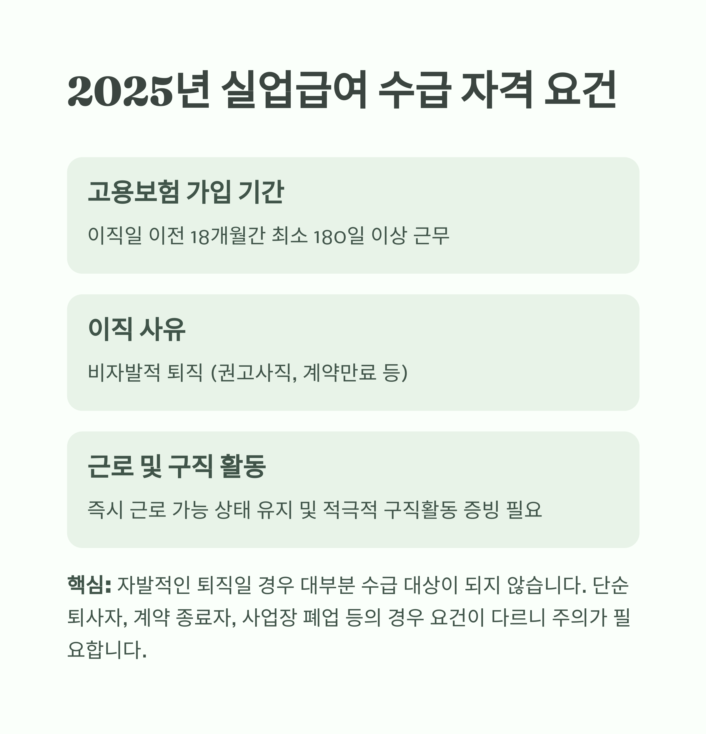 2025년 기준 실업급여 수급 자격은 아래와 같습니다.