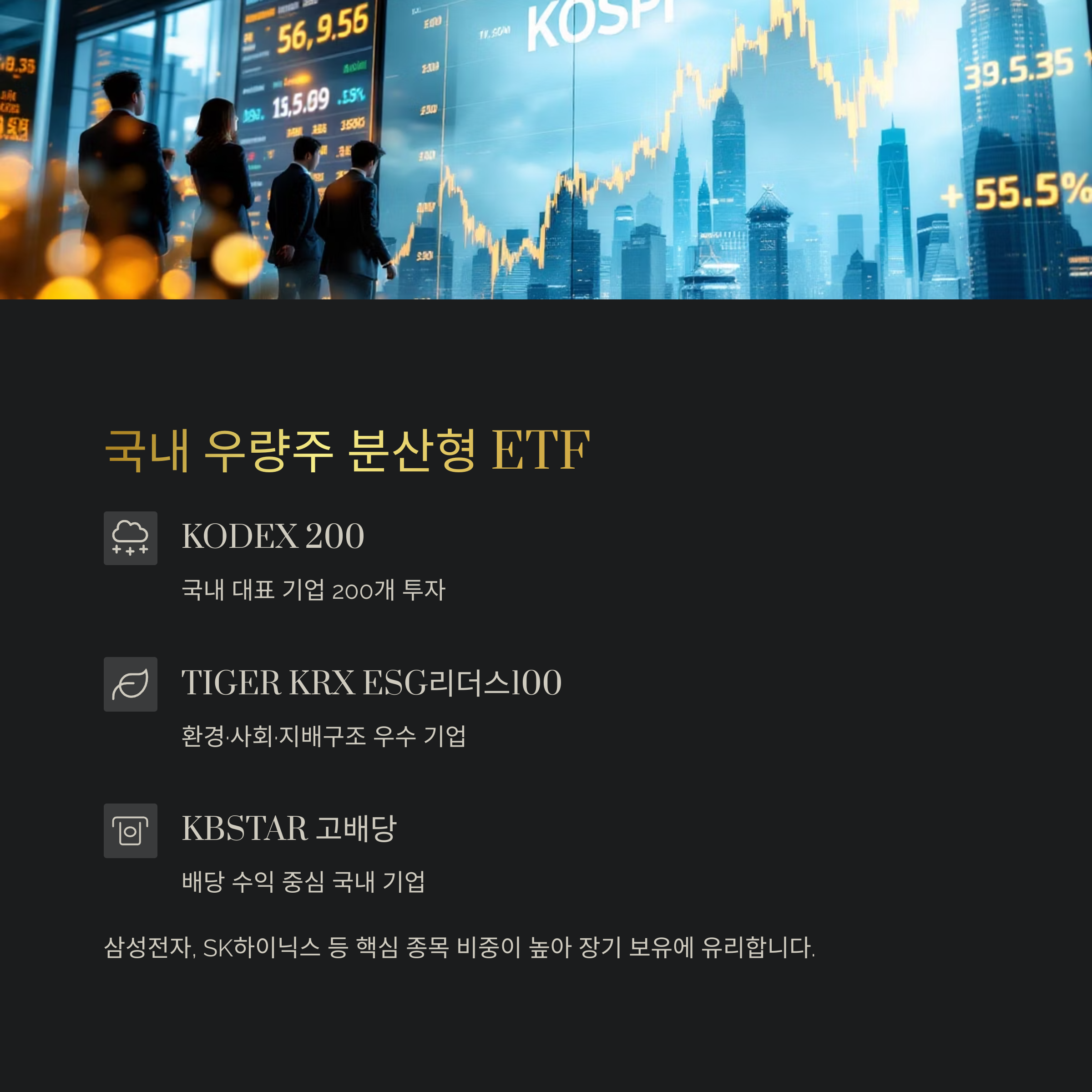 삼성전자, SK하이닉스 등 핵심 종목 비중이 높아 장기 보유에 유리합니다.