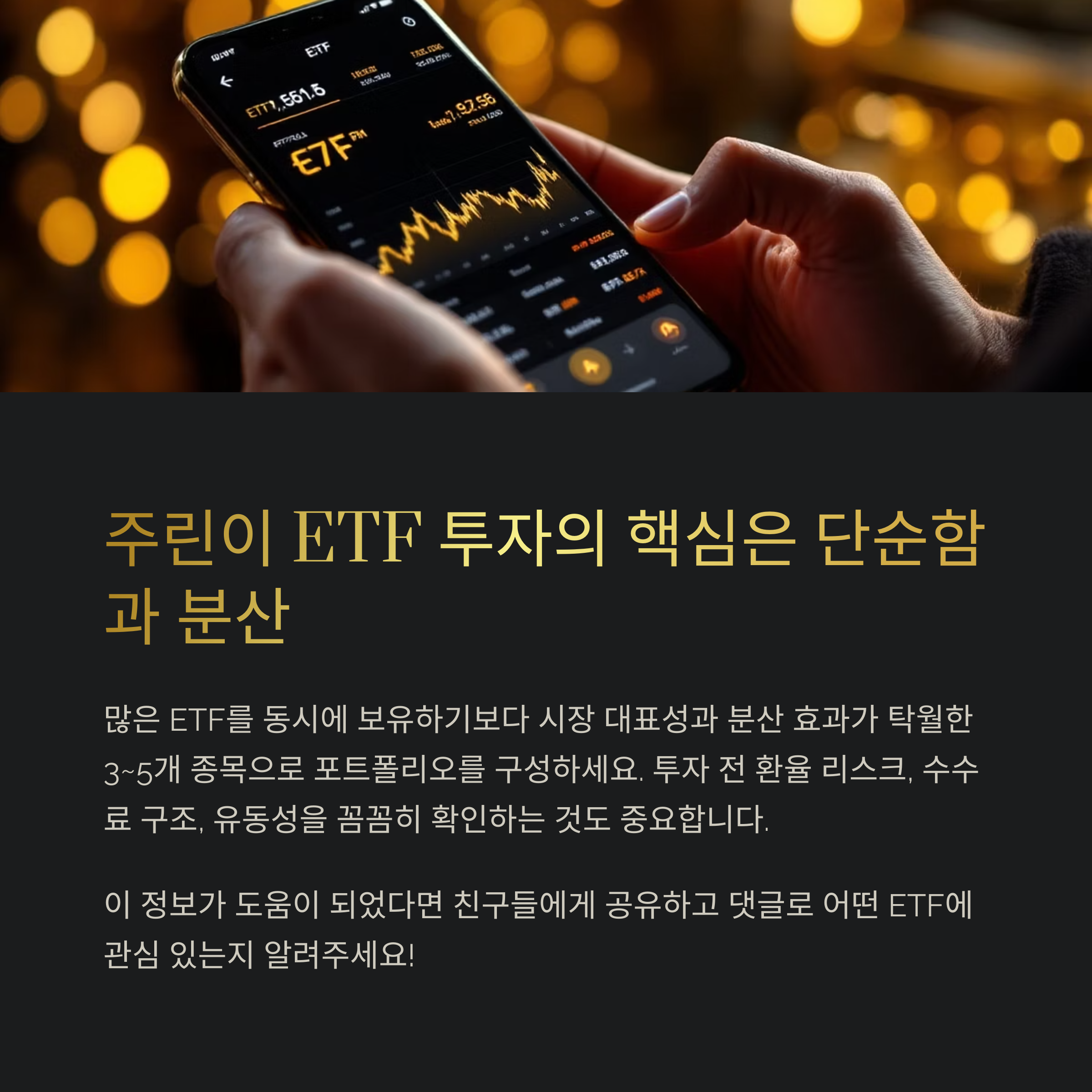 많은 ETF를 동시에 보유하기보다는, 시장 대표성과 분산 효과가 탁월한 3~5개 종목으로