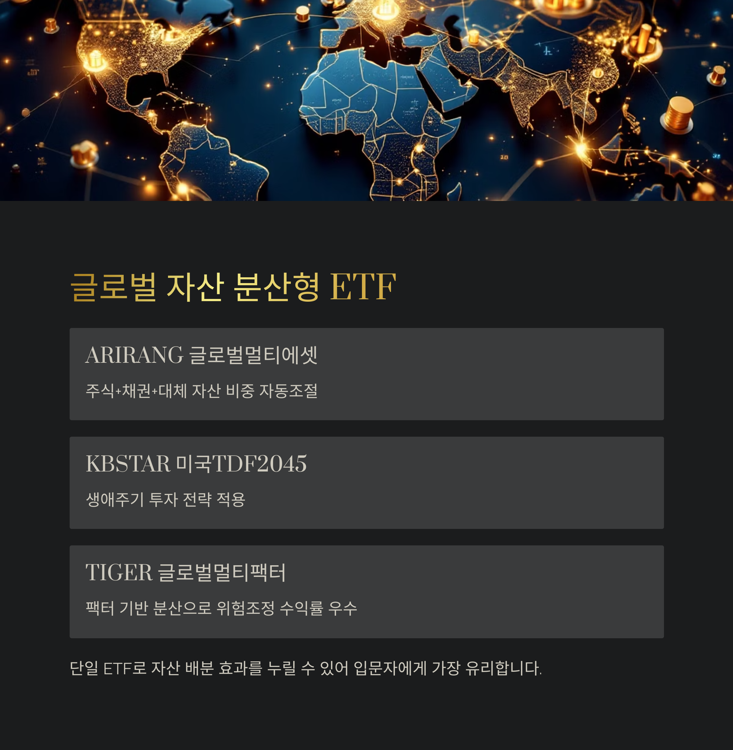 ETF추천, 분산투자, 글로벌자산배분, 초보투자전략, 장기투자