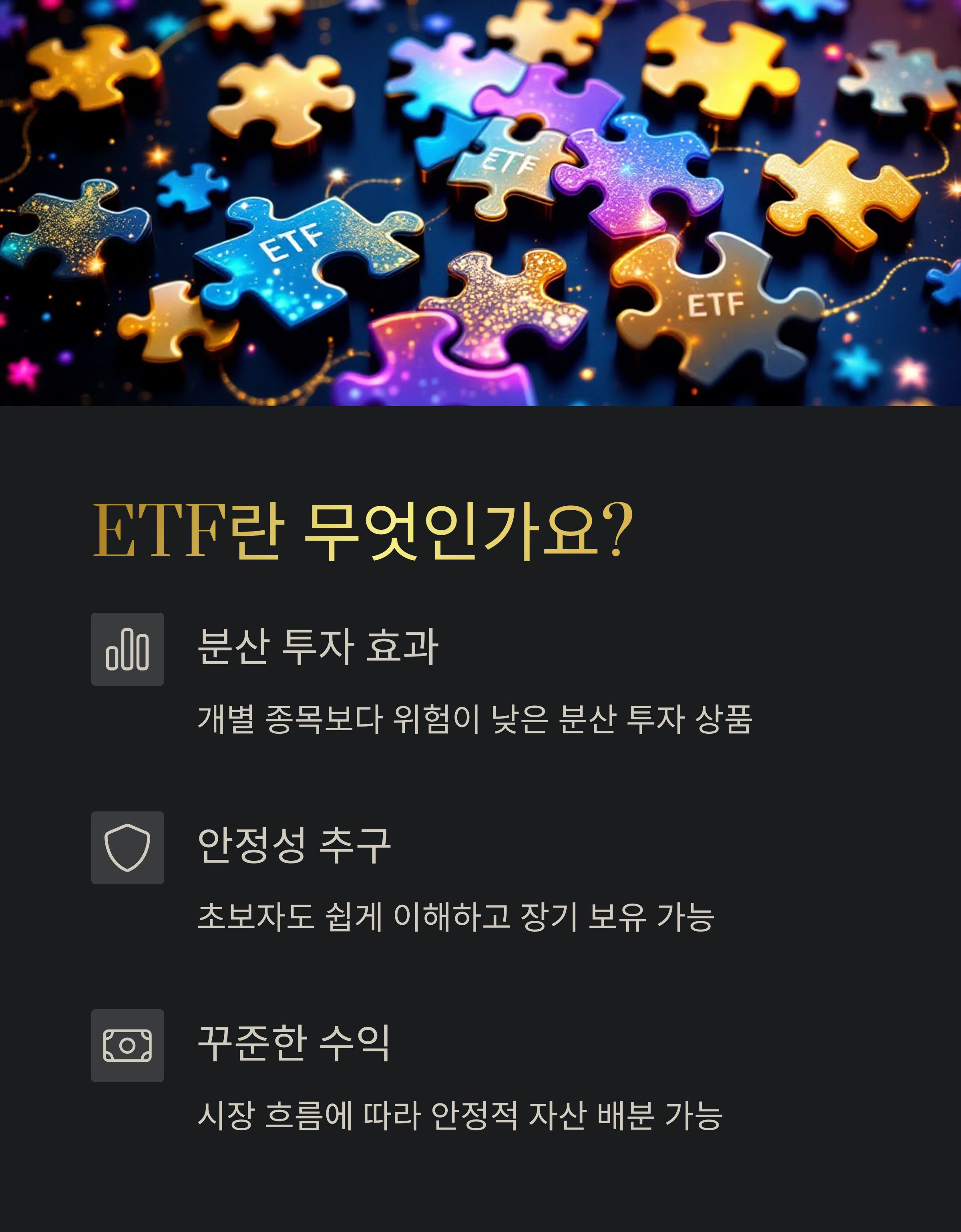 초보자도 쉽게 이해하고 장기 보유가 가능한 ETF 중심의 투자 전략을 소개합니다.