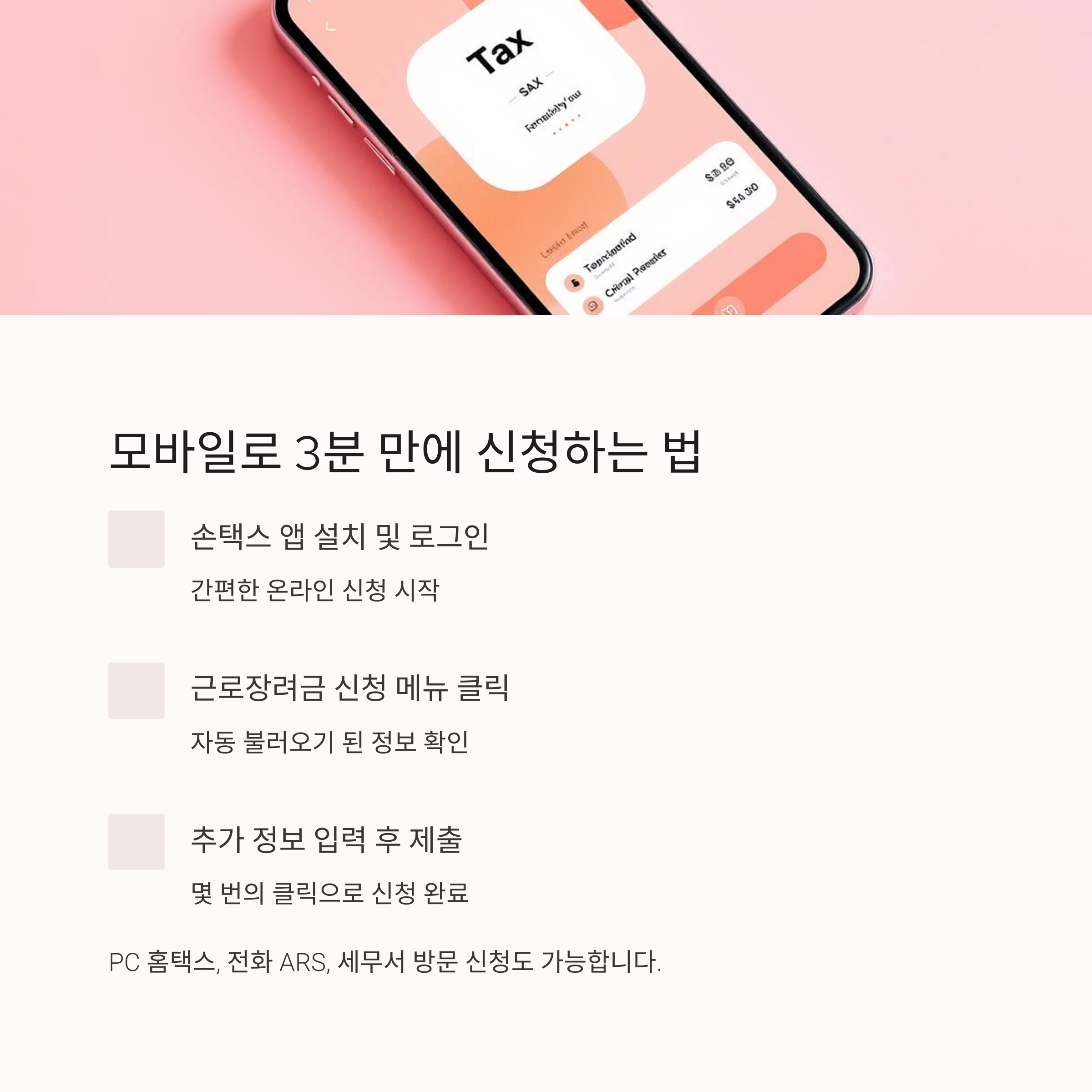 "소득이 국세청에 자동 등록된 경우, 몇 번 클릭만으로 신청이 완료됩니다." 또한 PC 국세청 홈택스, 전화 ARS, 세무서 방문도 가능합니다.