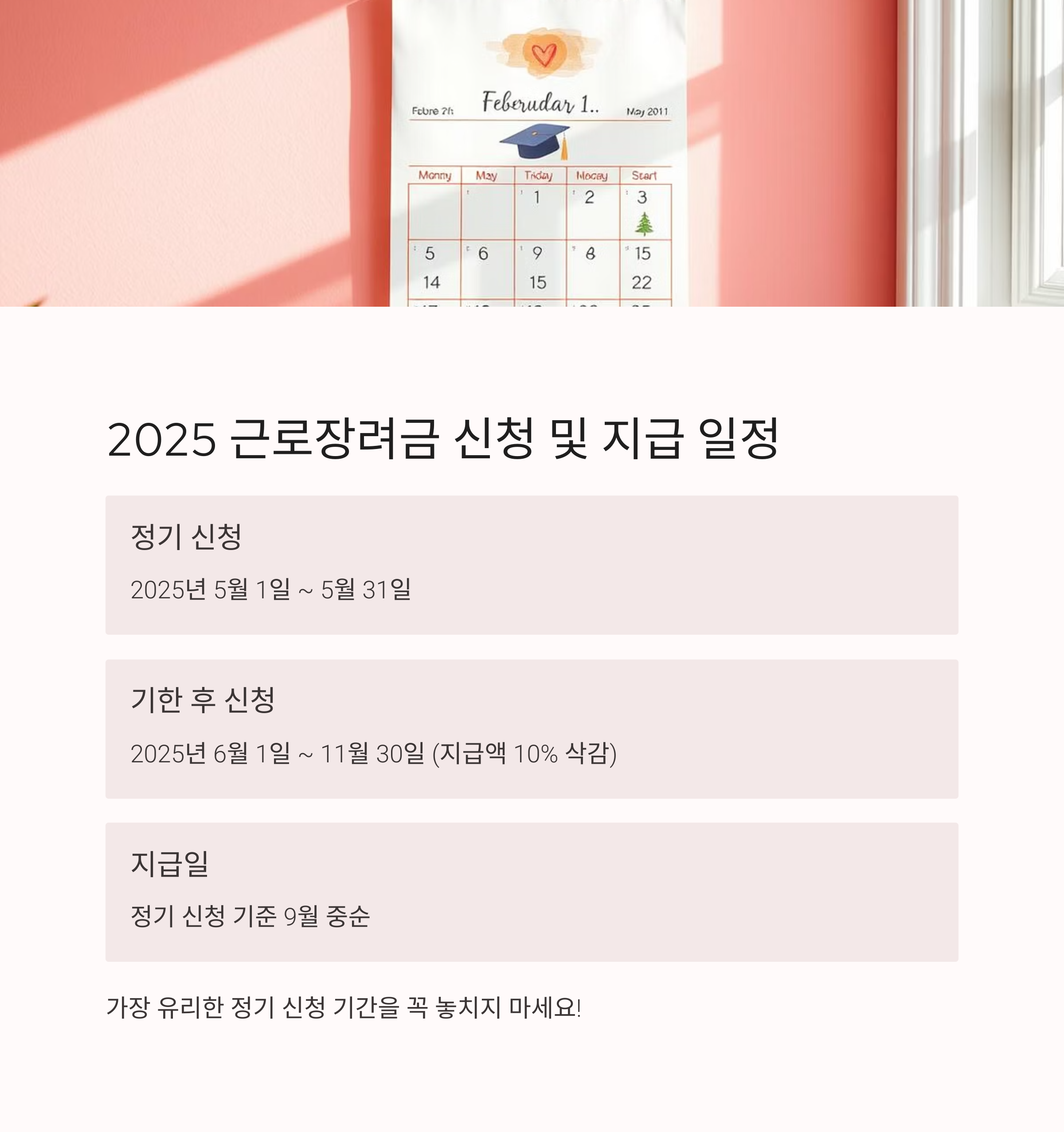 신청은 언제? 2025 근로장려금 지급 일정 요약