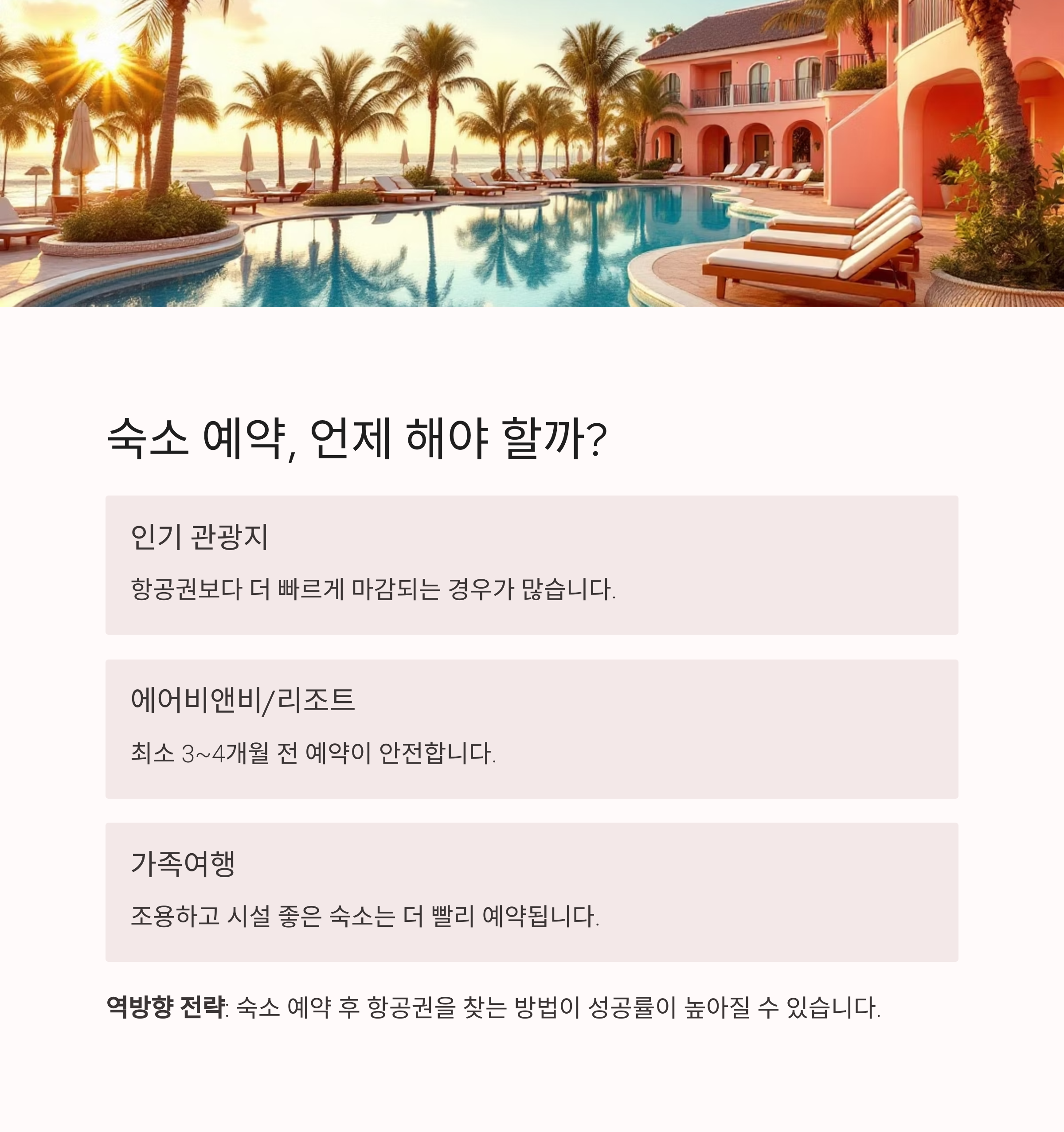 숙소 예약 후 항공권을 찾는 '역방향 전략'이 성공률이 높아질 수 있습니다.