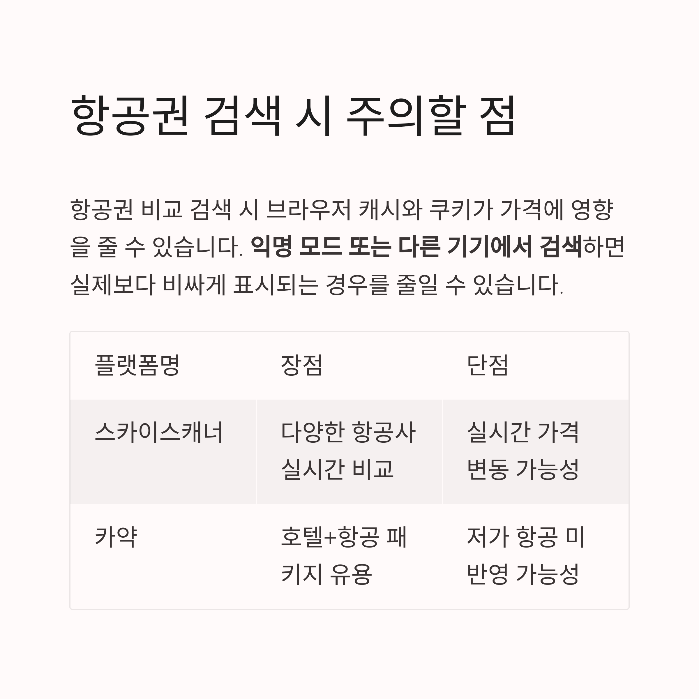 | 스카이스캐너 | 다양한 항공사 실시간 비교 | 실시간 가격 변동 가능성 |