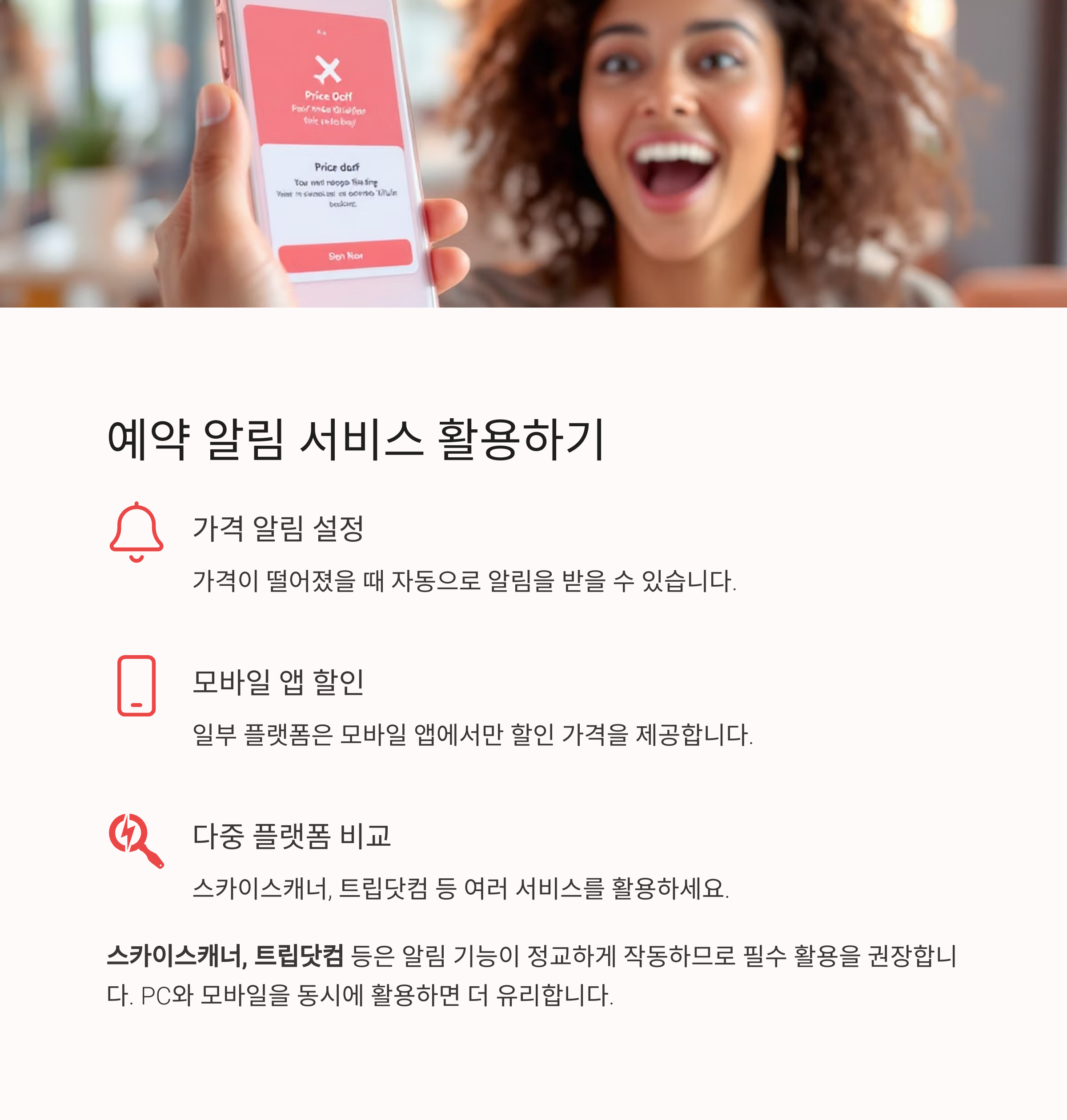 스카이스캐너, 트립닷컴 등은 알림 기능이 정교하게 작동하므로 필수 활용을 권장합니다.