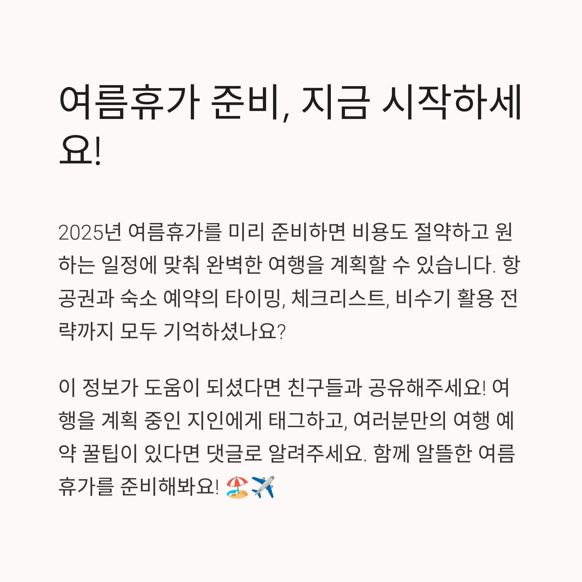 2025년 여름휴가를 앞두고 항공권과 숙소를 미리 준비하면 비용을 절약하고 원하는 일정에 맞춰 계획할 수 있습니다.