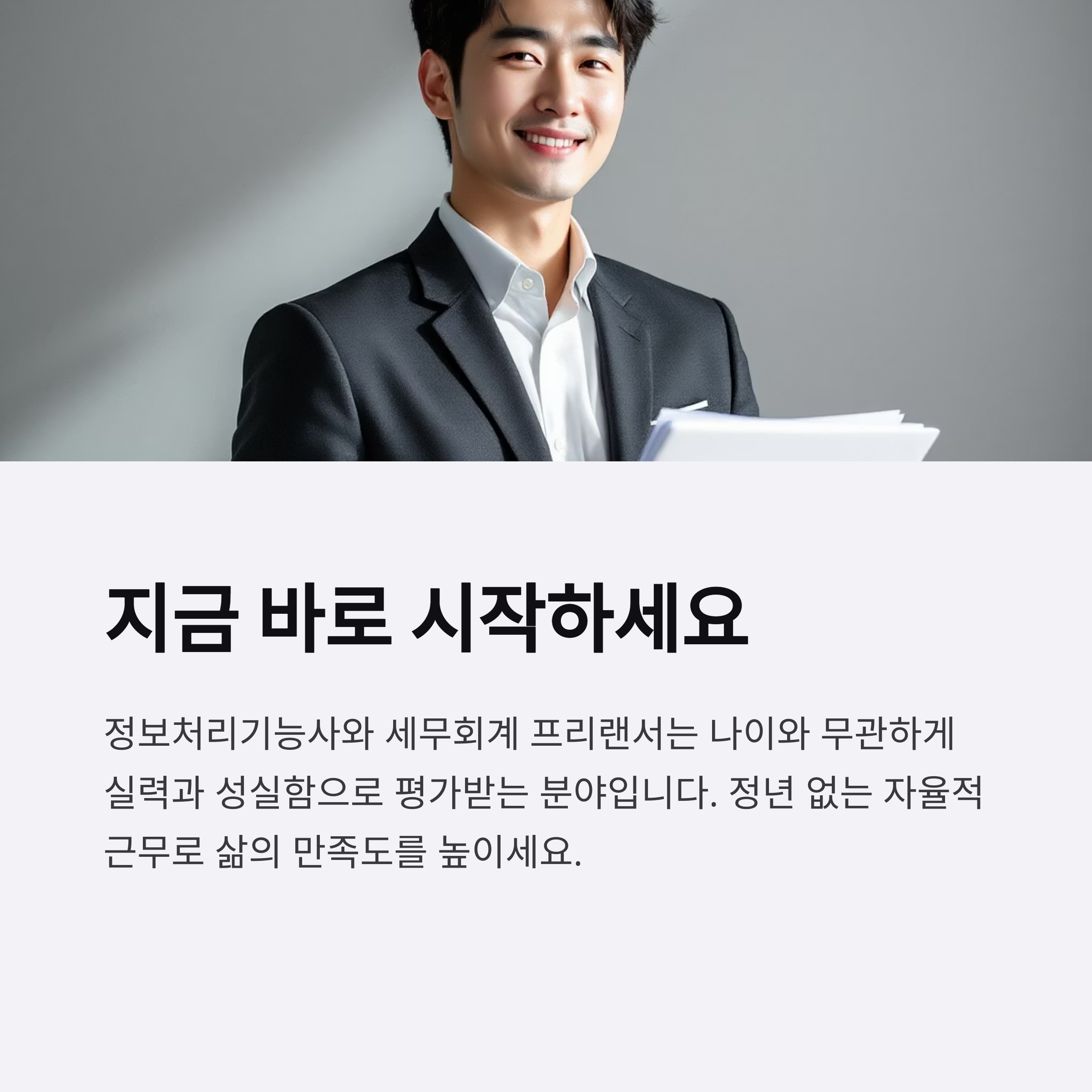 50대 이후 재취업은 단순한 생계 유지를 넘어서 자아 실현과 경력 전환의 의미를 담고 있습니다. 특히 IT 기반의 디지털 전환 흐름과 세무회계 시장의 프리랜서 수요 증가는 실질적인 기회가 됩니다. 본 글에서는 디지털 정보처리기능사 자격증과 세무회계 프리랜서 직무를 중심으로 재취업 방향을 제시합니다.